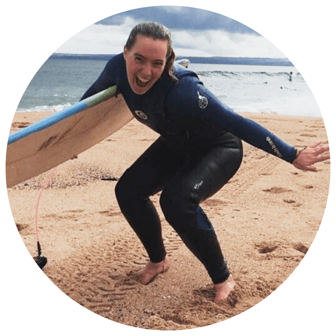 To loving surfing again: She used our Spinal Breathing to relax and feel more safe to move her back. She learned how to adjust spinal exercises to her needs and re-built her spinal mobility, so she can surf and love moving her body again.